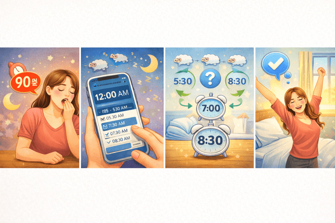 90분 수면 사이클로 개운하게! 수면시간 계산기